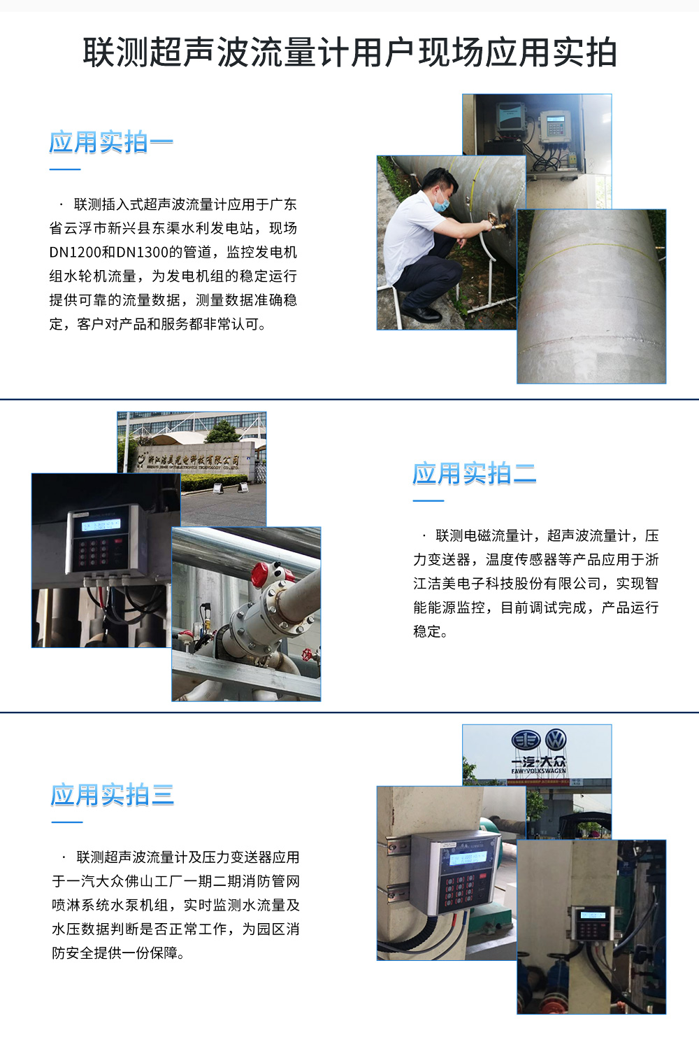 測超聲波流量計適合相對純凈液體流量的管外測量,尤其是在水流量測量、在工業(yè)循環(huán)水、空調(diào)制冷循環(huán)水、原水、高壓水、自來水,污水排放管等廣泛應(yīng)用。