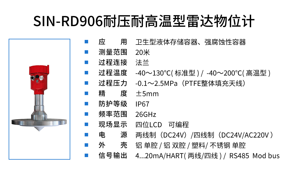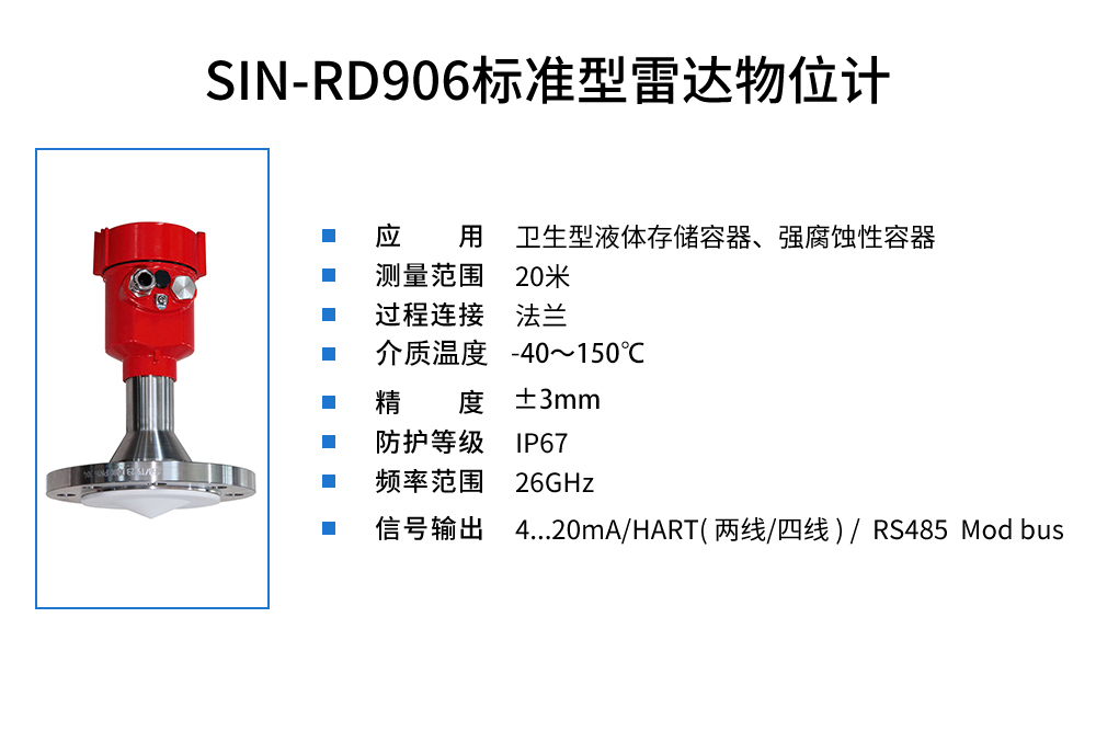 您的位置: 首頁 > 雷達液位計 >SIN-RD906雷達液位計_適用于衛生型液體存儲容器_