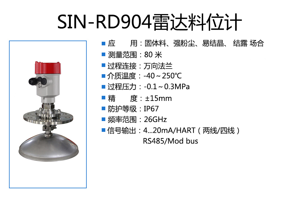 聯測_SIN-RD904雷達料位計_適用于強粉塵、易結晶 _