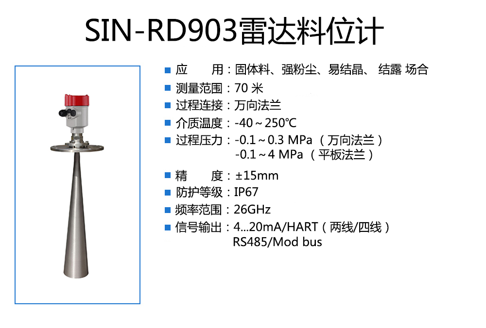 您的位置: 首頁 > 雷達液位計 >聯測_SIN-RD903雷達料位計_適用于固體料 結露 _