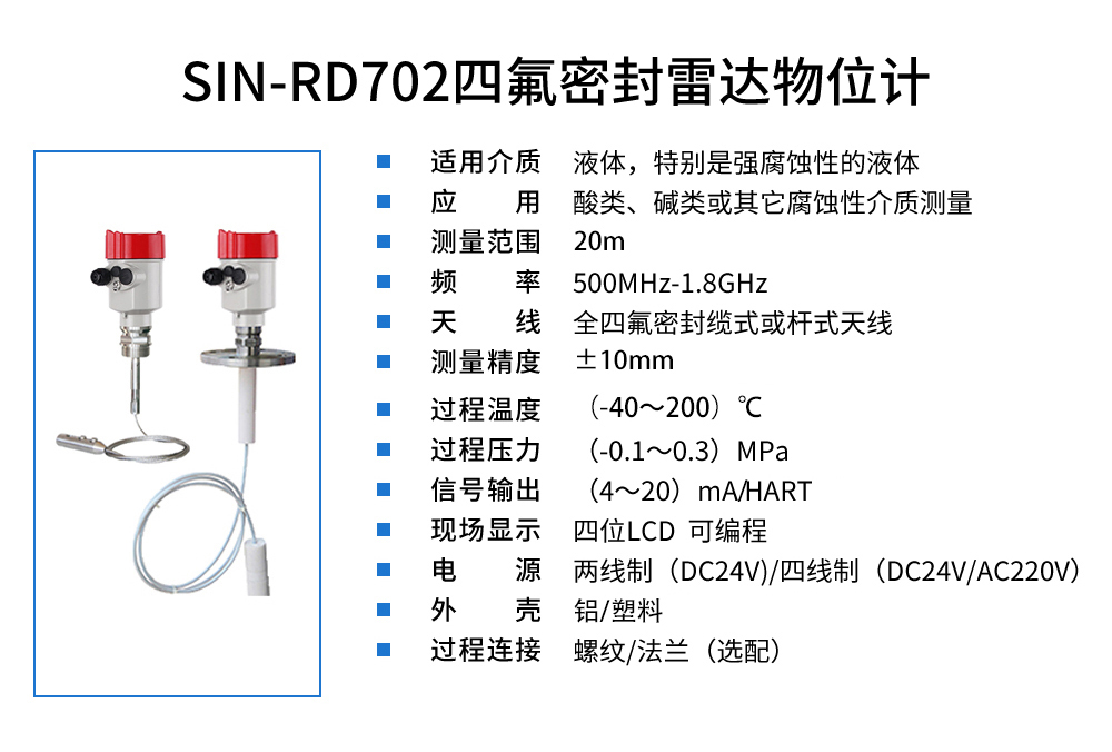 聯(lián)測(cè)_SIN-RD702四氟密封雷達(dá)液位計(jì)_適用于強(qiáng)腐蝕性的液體_