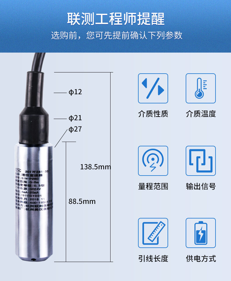 您的位置: 首頁 > 液位變送器 >聯測_SIN-P260投入式液位計/水位計_消防水箱_污水池_水庫液位_