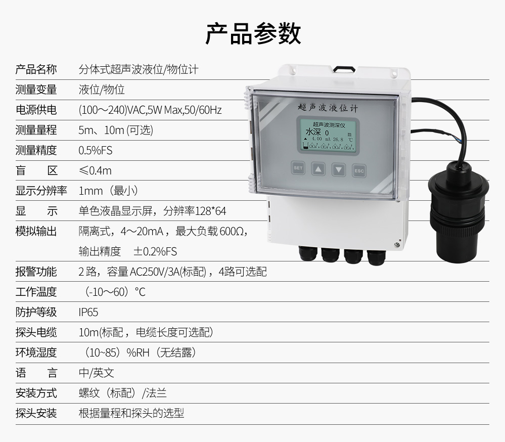 您的位置: 首頁 > 超聲波液位計 >聯(lián)測_SIN-ULS_升級款_分體式超聲波液位計/物位計/水位儀_